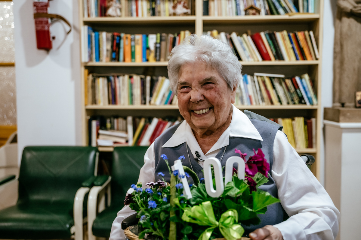 2021. április 8-án köszöntöttük Margit testvért 100. születésnapján a péceli idősotthonunkban.